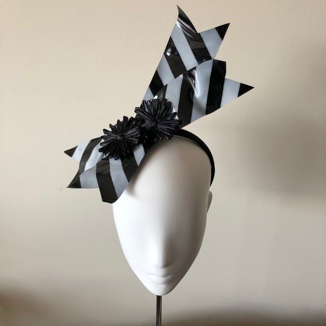 Modern floating handmade acrylic ribbons on a narrow satin headband.