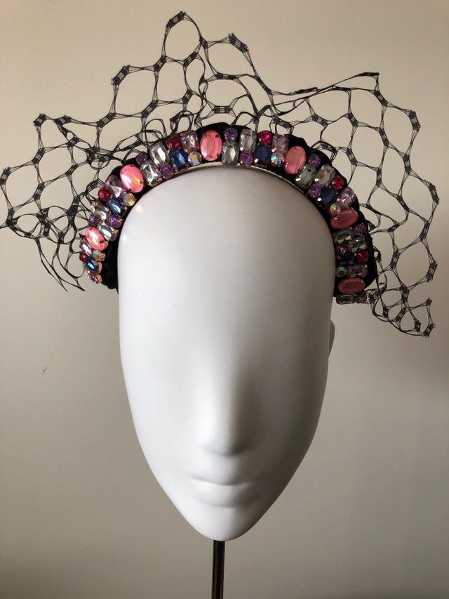 Regal. Multi- coloured jewelled headband with veiling forming a halo.